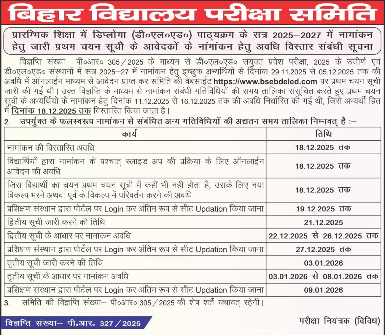 Bihar BSEB ने DELED Admission 2025-27 की 2nd Selection List जारी